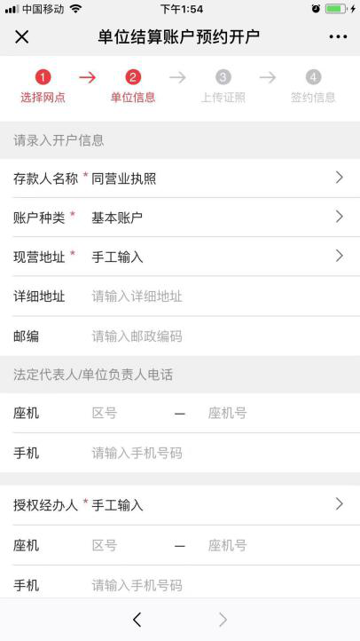 1、以上海中信银行为例,关注中信银行微信公众号→点击我要开户→点击对公预填单→填写“单位结算账户预约开户之选择网点”(推荐人可不填)→单位信息→上传证照→签约信息